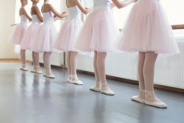 Comfortable dancewear or activewear. Ballet shoes for pre-pointe students and pointe shoes for beginning pointe students.